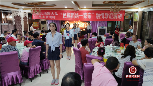 最后的联欢会上,干部职工与亲戚欢聚一堂,载歌载舞。九队职工也为到来的亲戚表演现代舞蹈、葫芦丝演奏、独唱等节目,充分展现了新时代九队人的精神面貌,一曲欢快的麦西莱甫跳出了各民族间血脉相连的情谊。第九地质大队大队长周晓飞说:“大家要感恩党、感恩政府,珍惜亲戚之间的友情、亲情。要把这次来乌鲁木齐看到的、听到的,感受到的,回到村里跟村民多多宣传,建设好美丽庭院,早日脱贫致富,过上幸福的生活,共同建设好美丽的吐木秀克村。“